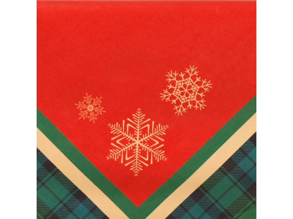 Je zdoben potiskem sněhových vloček a károvaného vzoru.