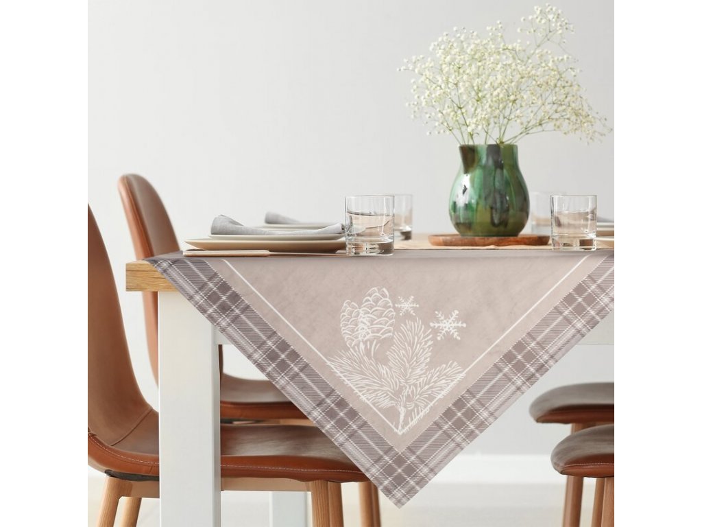 Sametový dekorační ubrus na stůl s vánočním motivem v béžové barvě.