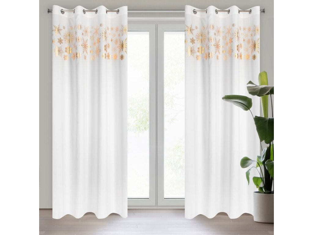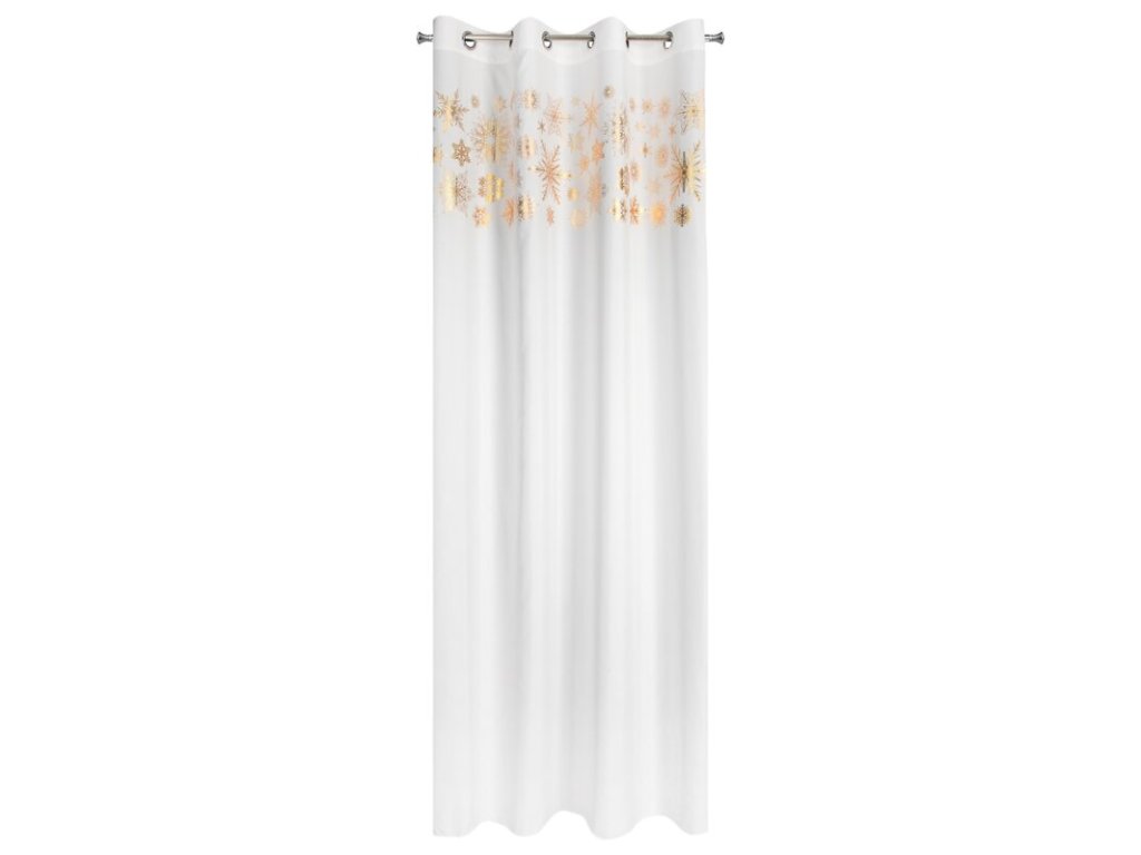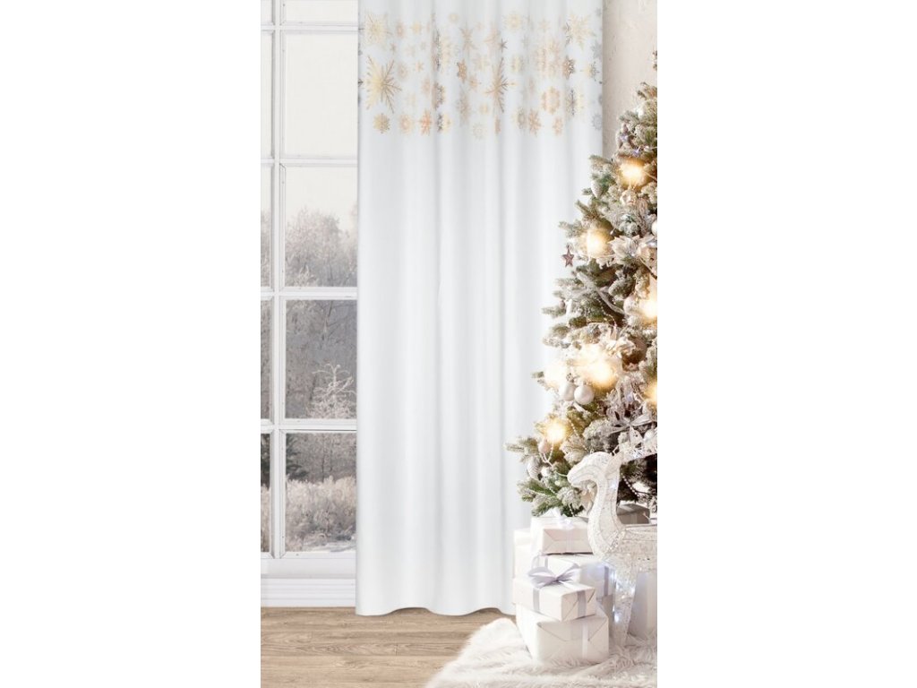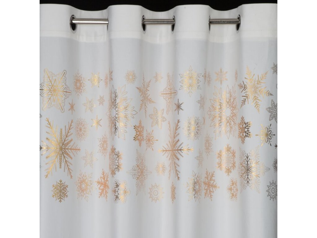 Lesklý potisk sněhových vloček v horní části závěsu mu dodává nádech zimní magie.