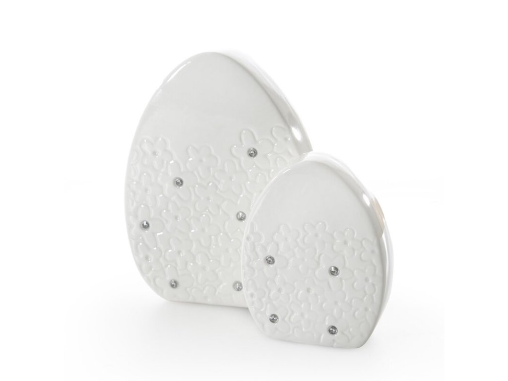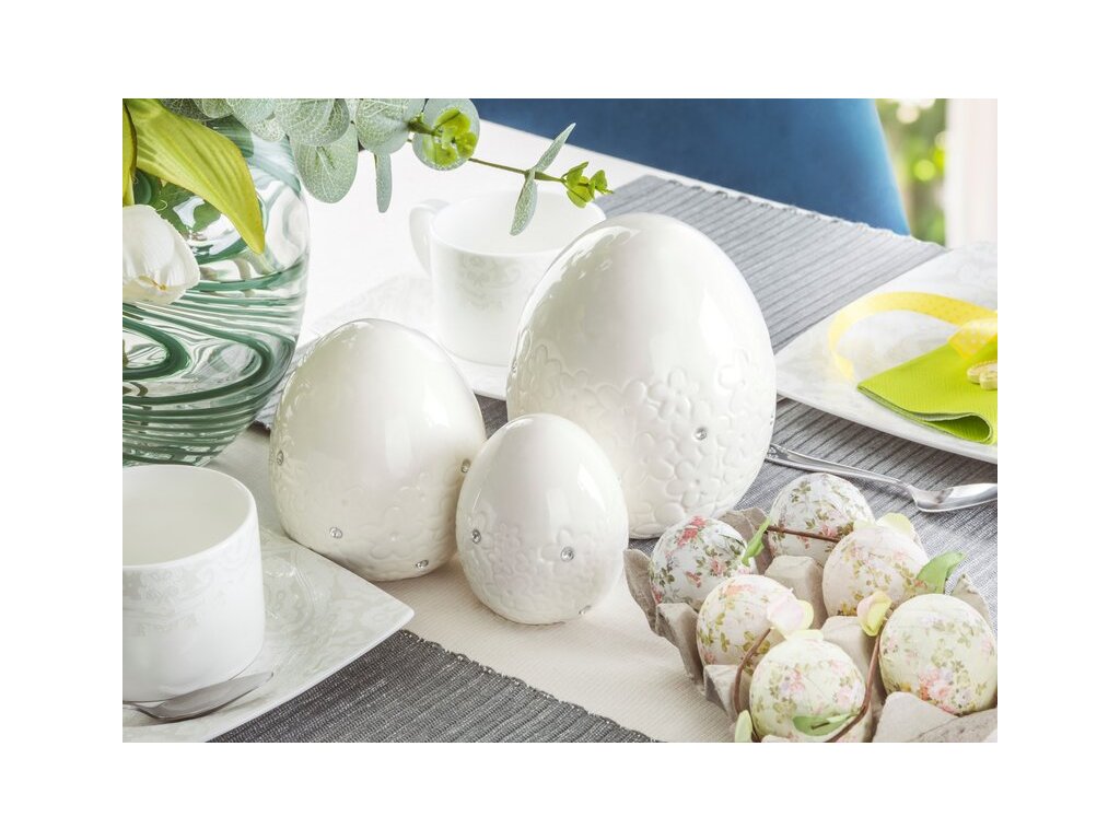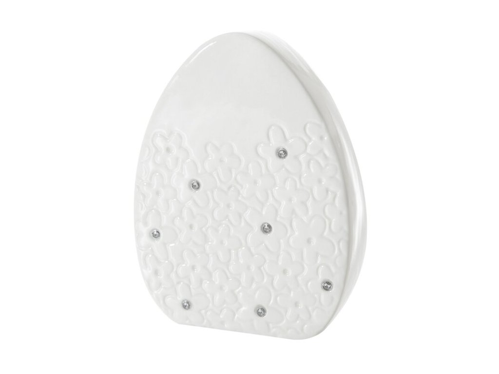Stylová a elegantní velikonoční figurka ve tvaru vajíčka vyrobená z kvalitní keramické hlíny. Její jedinečný design podtrhuje zdobení v bílé barvě, které dekoraci dodává moderní a luxusní charakter.