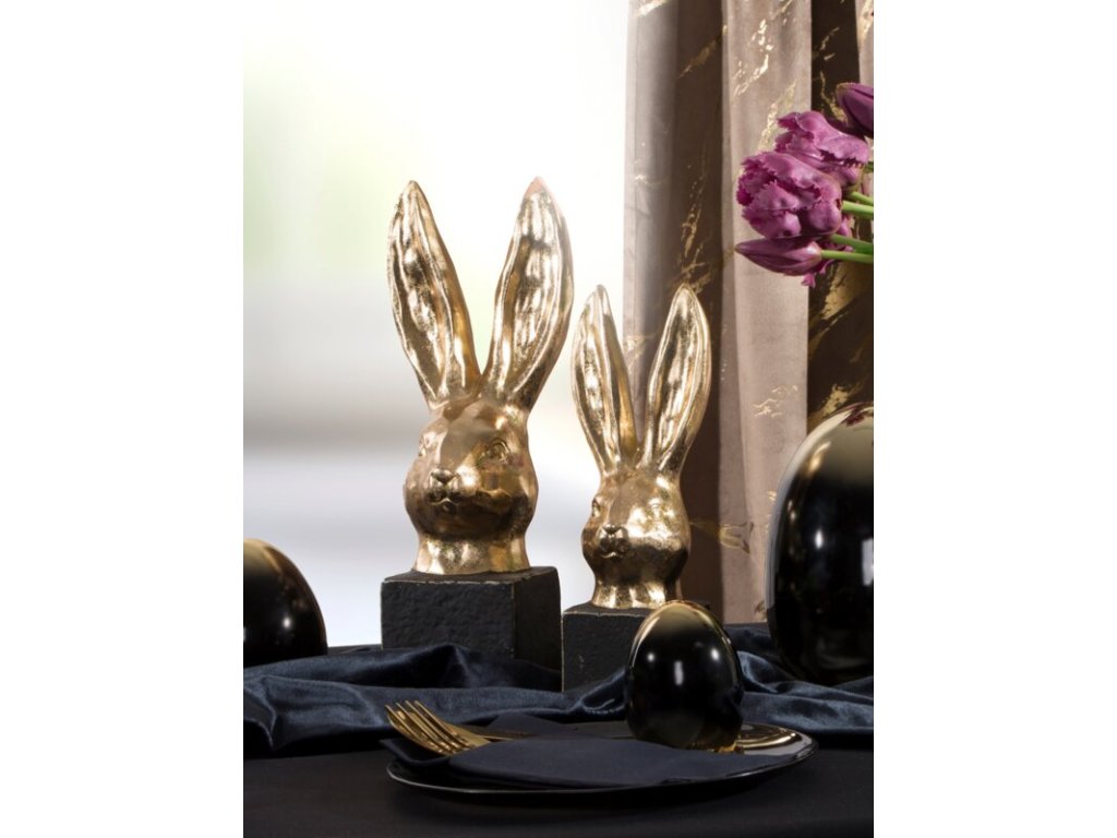 Velikonoční figurka zajíce ve zlaté a černé barvě