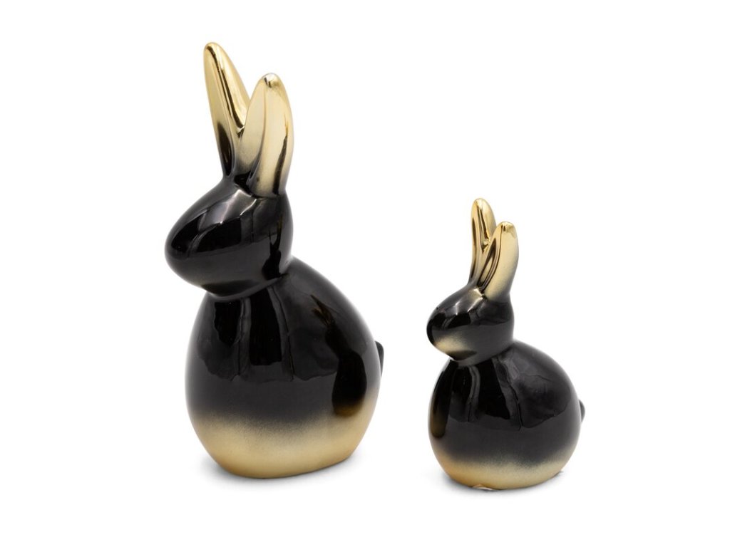 Velikonoční figurka zajíčka v černo-zlaté barvě