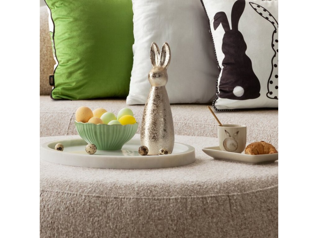 Díky preciznímu zpracování a plynulým liniím působí tento zajíček mimořádně sofistikovaně. Je to ideální solitér pro slavnostní stůl nebo komodu, kde vnese do prostoru nádech noblesy a sváteční náladu. Harmonické spojení materiálu a barev z něj činí nadčasový kousek, který překračuje hranice běžných dekorací.