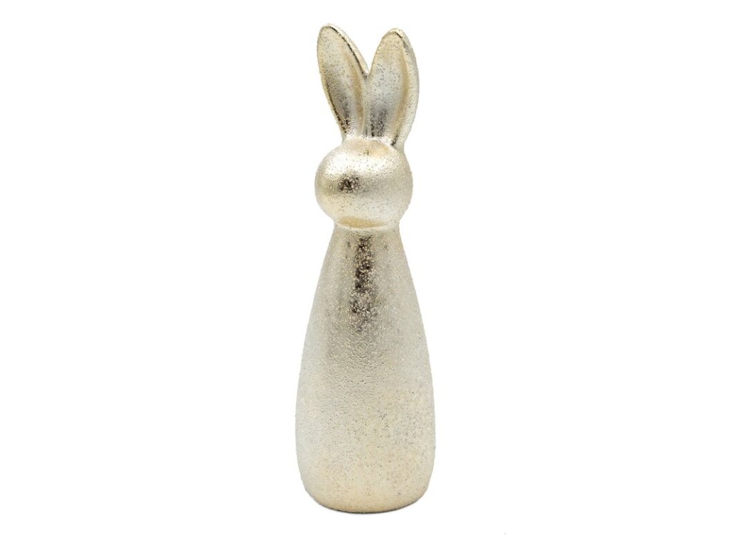 Tato majestátní velikonoční figurka zajíčka v šampaňském provedení představuje vrchol elegance. Vyrobená z poctivé keramické hlíny, vyniká svojí výškou a luxusním ombre zdobením. Šampaňské tóny plynule přecházející po povrchu figurky dodávají interiéru moderní ráz a nevídaný vizuální rozměr.