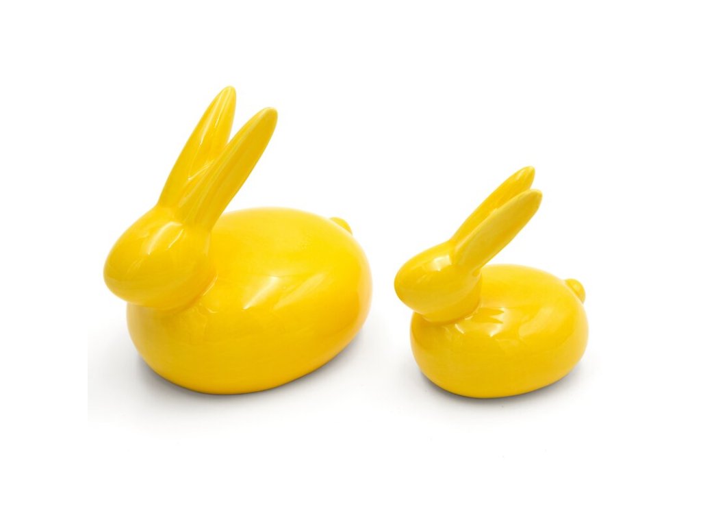 Zajíček je vyroben ze 100% keramické hlíny , která mu dodává pevnost, stabilitu a kvalitní vzhled. Lesklá žlutá glazura jemně odráží světlo a zvýrazňuje čisté linie dekorace. Žlutá barva symbolizuje jaro, přírodu a nový začátek, díky čemuž je ideálním doplňkem velikonoční výzdoby.