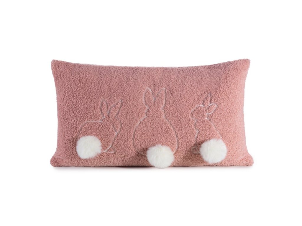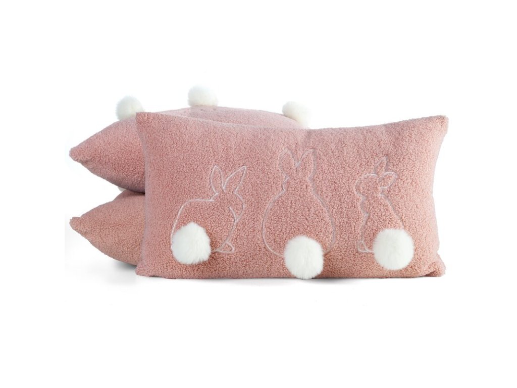 Celek doplňují nadýchané bambule imitující zaječí ocásky, které dodávají povlečení na polštář neopakovatelné kouzlo.