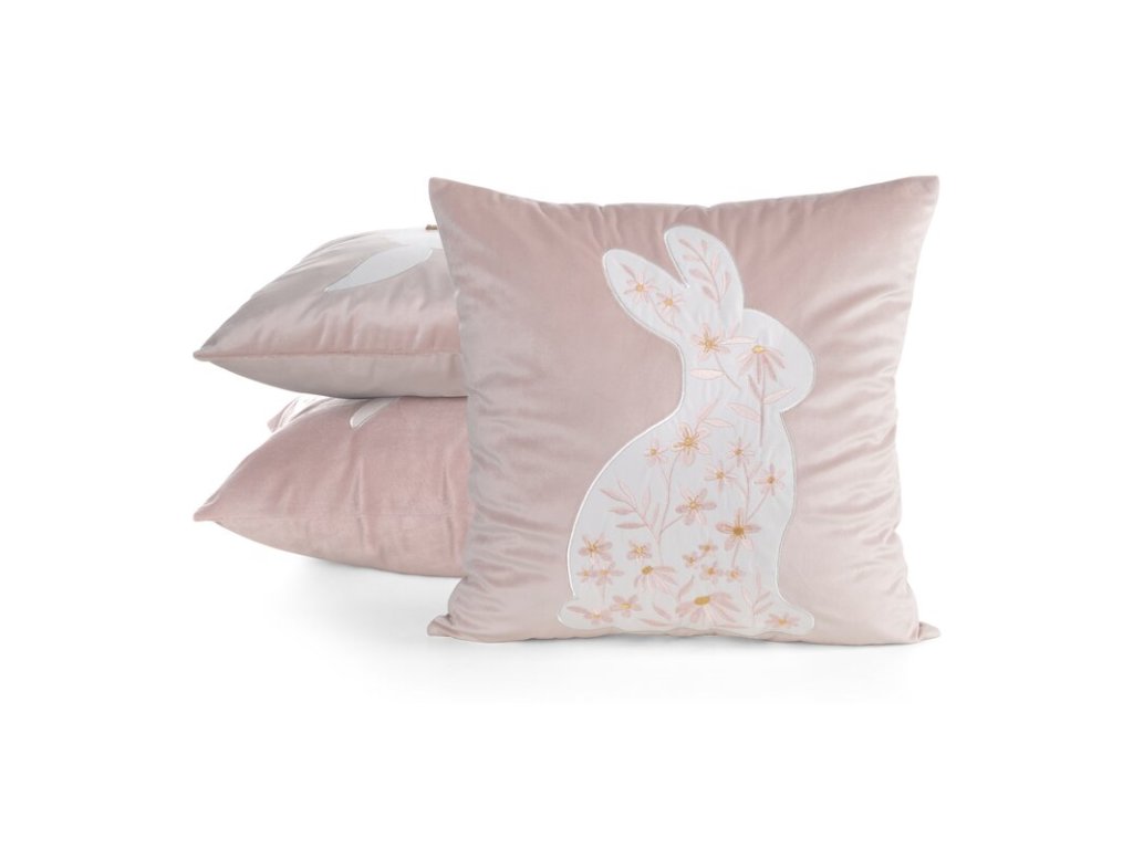 Velikonoční povlak na polštář se zajíčkem 45x45cm světle růžový