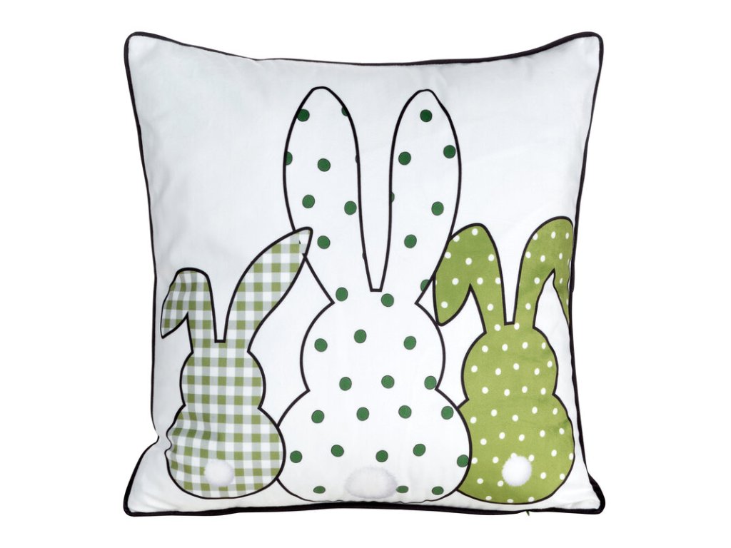 Velikonoční povlak na polštář SPRING 3 zdobený potiskem zajíčků - bílý