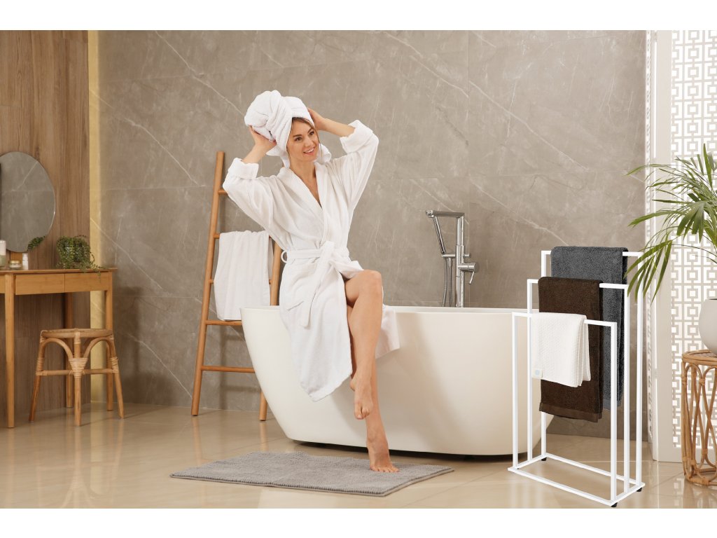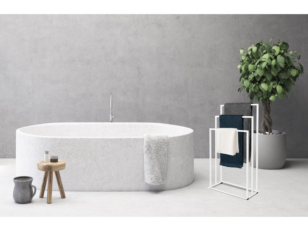 Elegantní a funkční stojan na ručníky Tire je ideálním doplňkem každé moderní koupelny. Vyroben z kvalitní oceli s práškovým nástřikem v bílém matném provedení , nabízí minimalistický design a vysokou odolnost vůči vlhkosti.