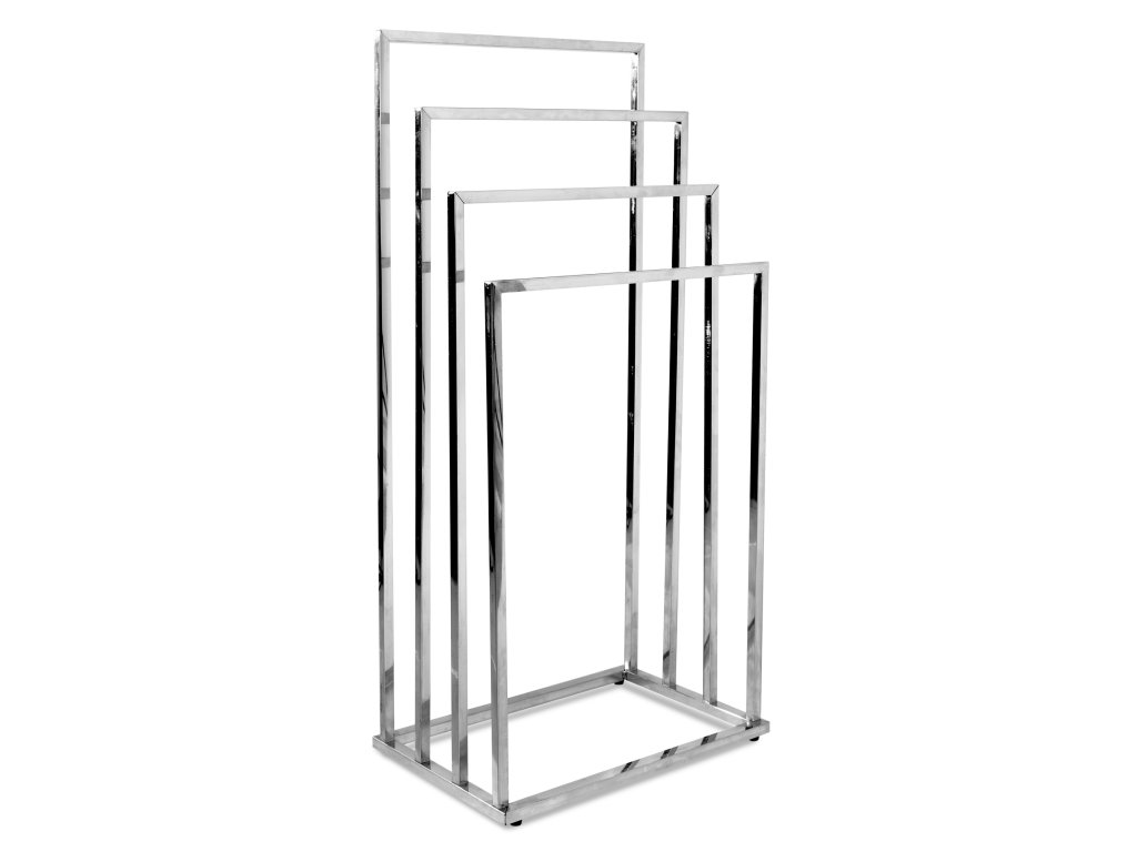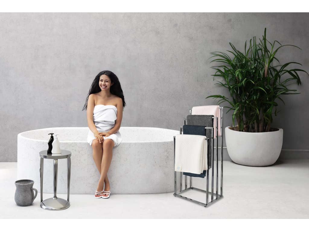 Moderní a elegantní stojan na ručníky Neli v lesklém chromovém provedení je praktickým doplňkem do každé koupelny. Vyroben je z kvalitní oceli s povrchovou úpravou v chromu , která zajišťuje vysokou odolnost proti vlhkosti, korozi a každodennímu používání .