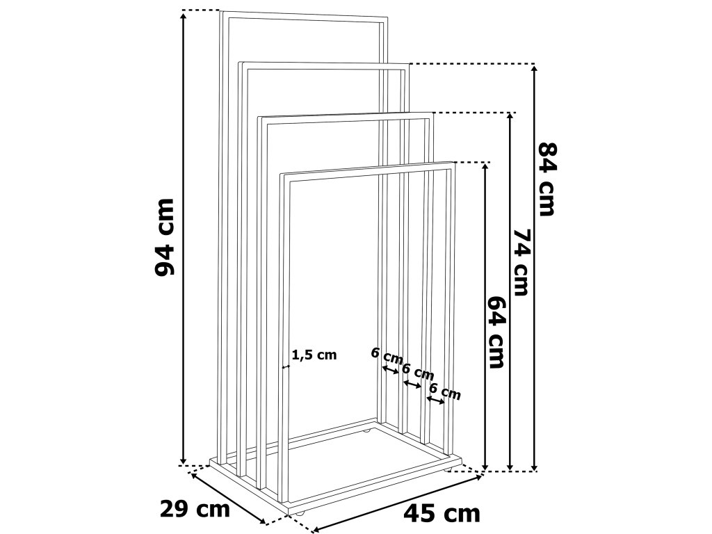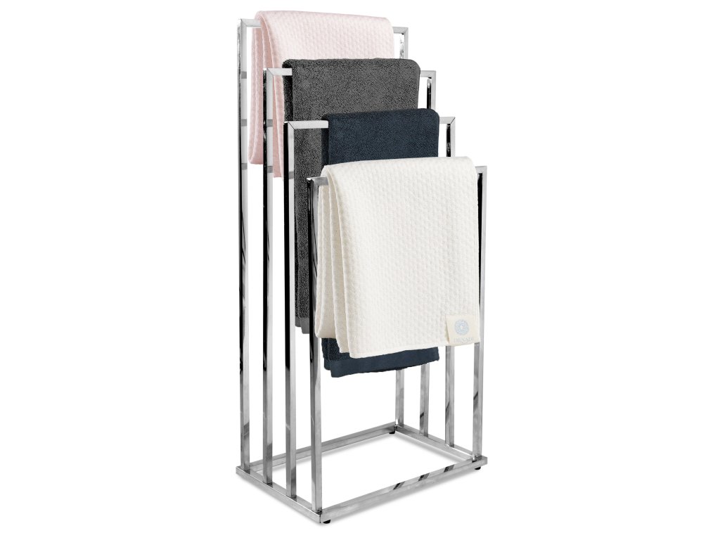 Čtyři ramena umístěná v různých výškách umožňují zavěšení více ručníků najednou , přičemž dostatečné rozestupy mezi nimi zaručují efektivní cirkulaci vzduchu a rychlé schnutí látek.