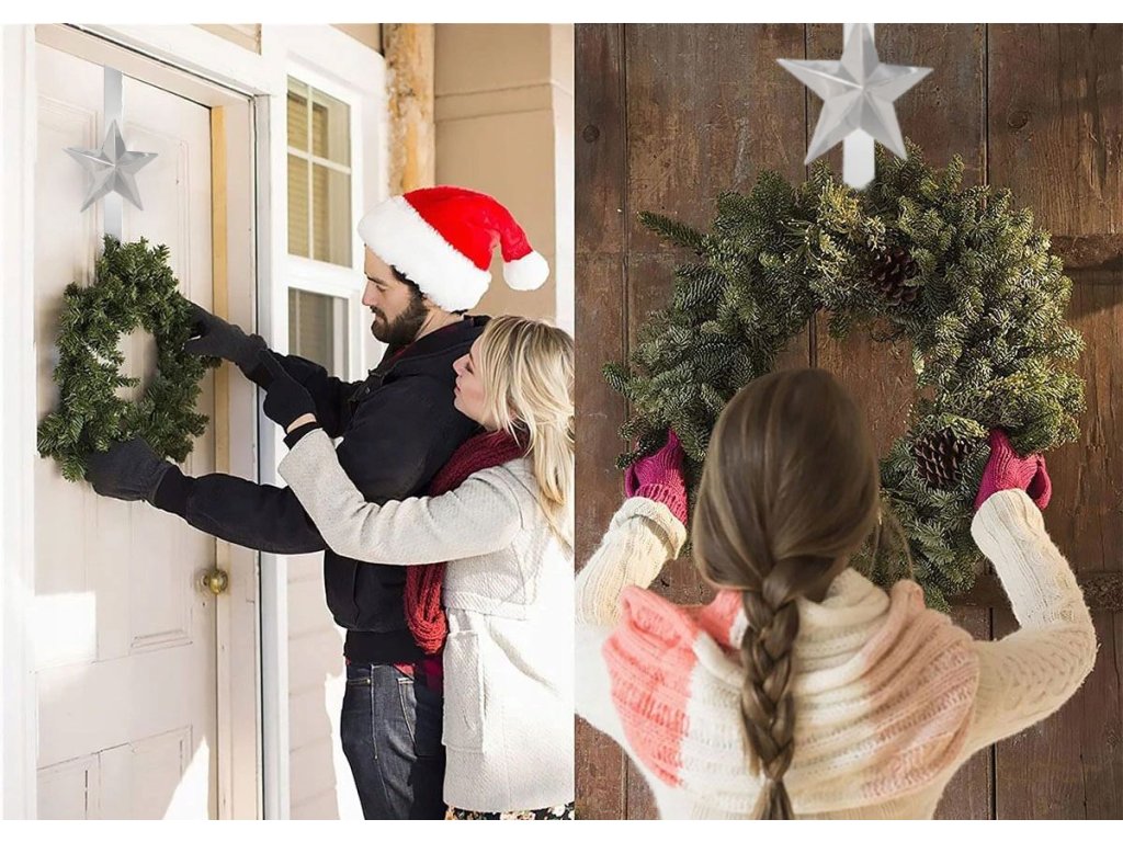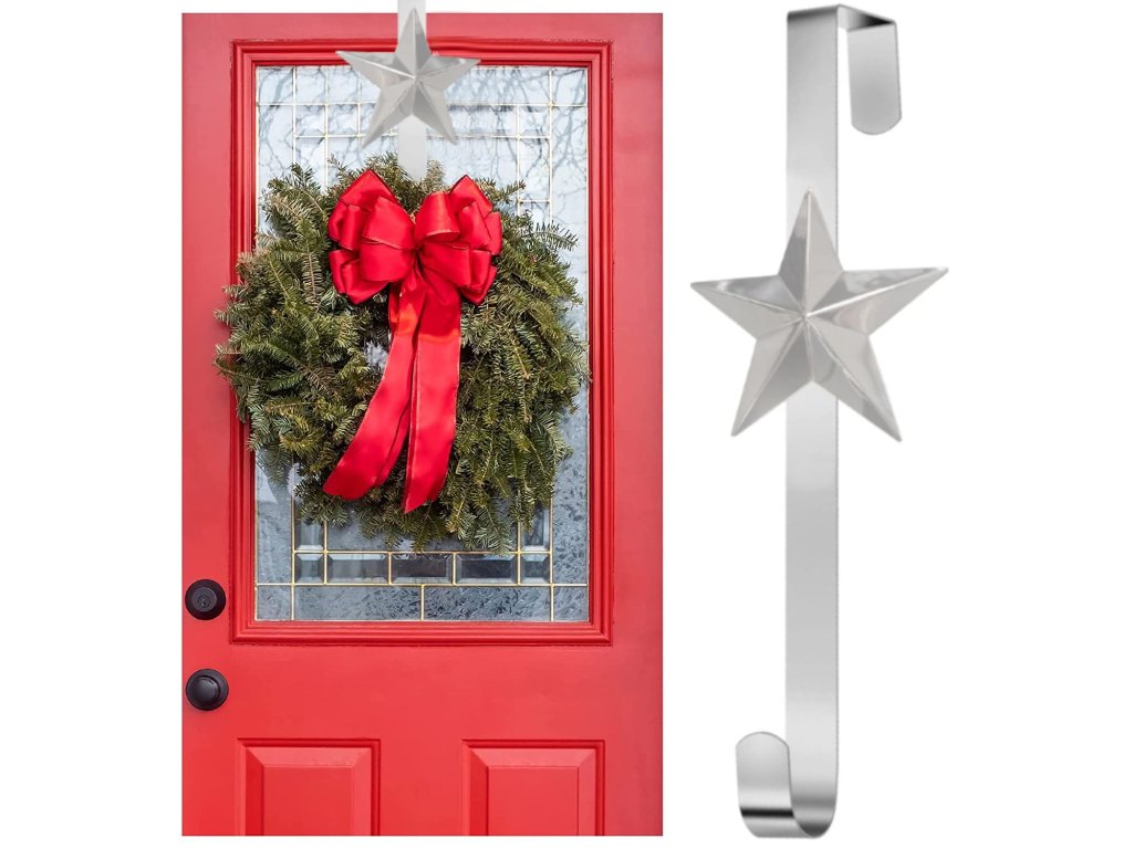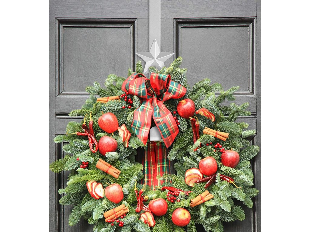 Praktický věšák pro vánoční dekoraci na dveře. Vyrobeno z odolného materiálu s ozdobnou hvězdou.