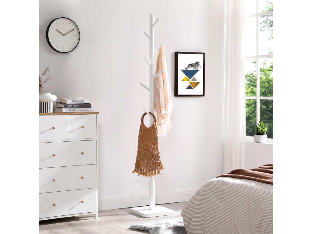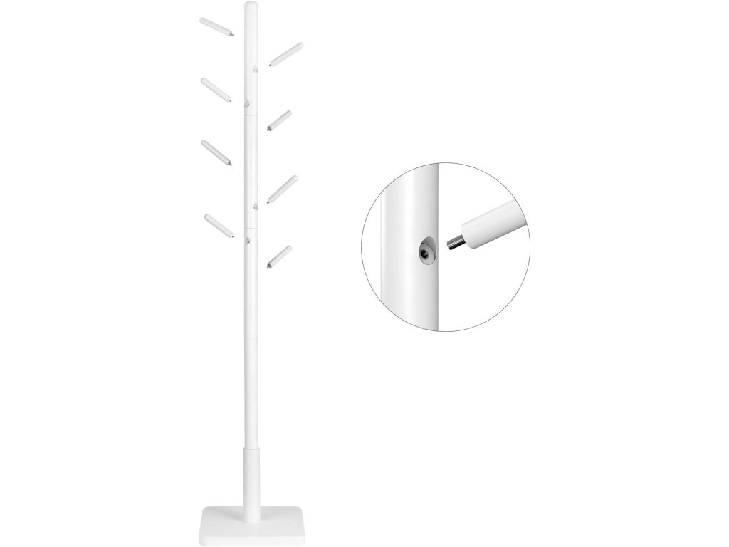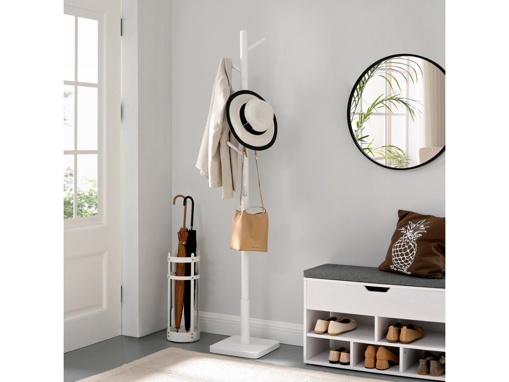Udržte předsíň i šatník dokonale uklizené bez zbytečného nábytku navíc. Tento moderní volně stojící věšák na oblečení v bílé barvě spojuje minimalistický design s praktickým řešením pro každodenní používání. Stabilní konstrukce s pevnou základnou působí elegantně a zároveň spolehlivě i při vyšší zátěži – ideální, když potřebujete mít kabáty, bundy či doplňky vždy po ruce.