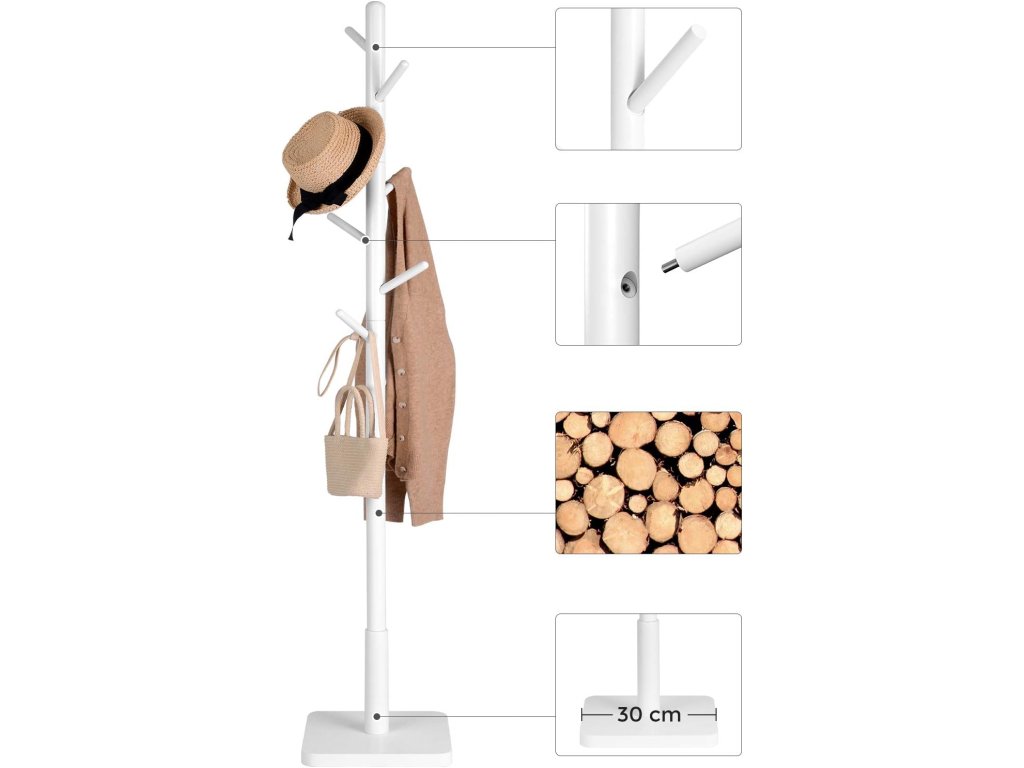 - Stabilní základna – věšák pevně stojí a je vhodný i při vyšším zatížení