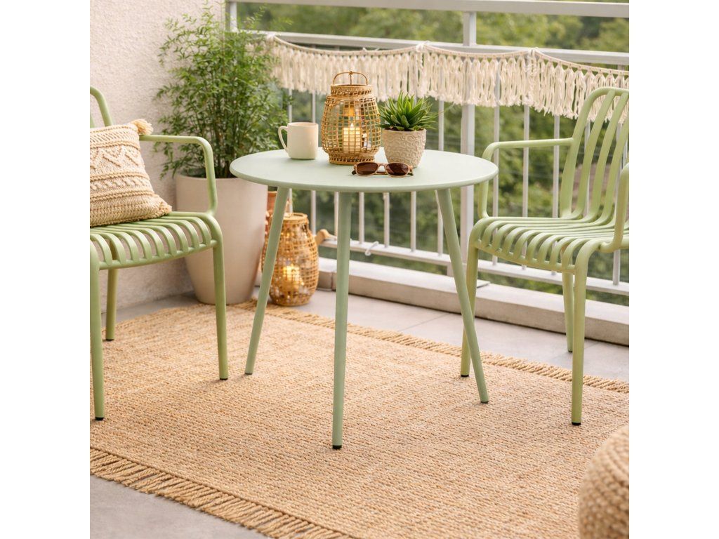 Zahradní kávový stolek DOMO ve svěží zelené barvě je elegantním a praktickým doplňkem každého balkonu, terasy, patio nebo zahrady. Celá konstrukce včetně okrouhlé desky stolu je vyrobena z oceli s práškovým nátěrem, který zaručuje odolnost vůči mechanickému poškození a atraktivní vizuální dojem. Moderní design s čistými liniemi zapadne do současných i klasických venkovních prostor.