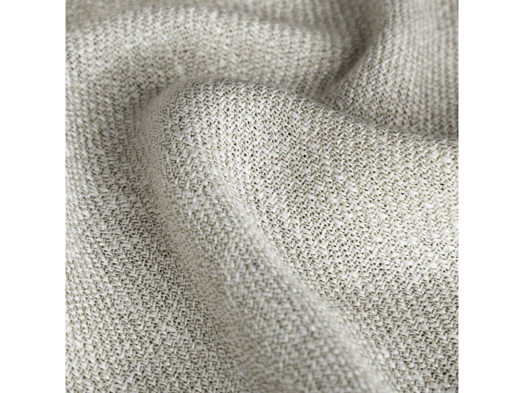 Jemná melánžová struktura dodává textilii přirozenou hloubku a opticky změkčuje prostor, aniž by jej zatemnila.