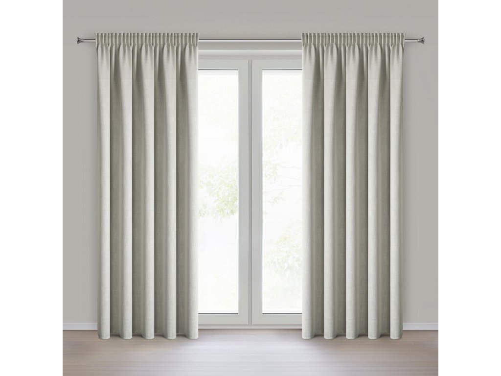 Tento hotový závěs z látky s viditelnou přirozenou vazbou působí lehce, čistě a zároveň elegantně.