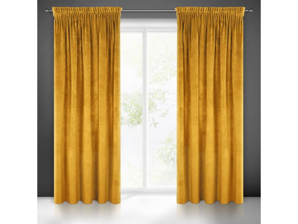 Závěs VILLA z exkluzivního sametu 140 x 270 cm v hořčičné barvě - řasící páska