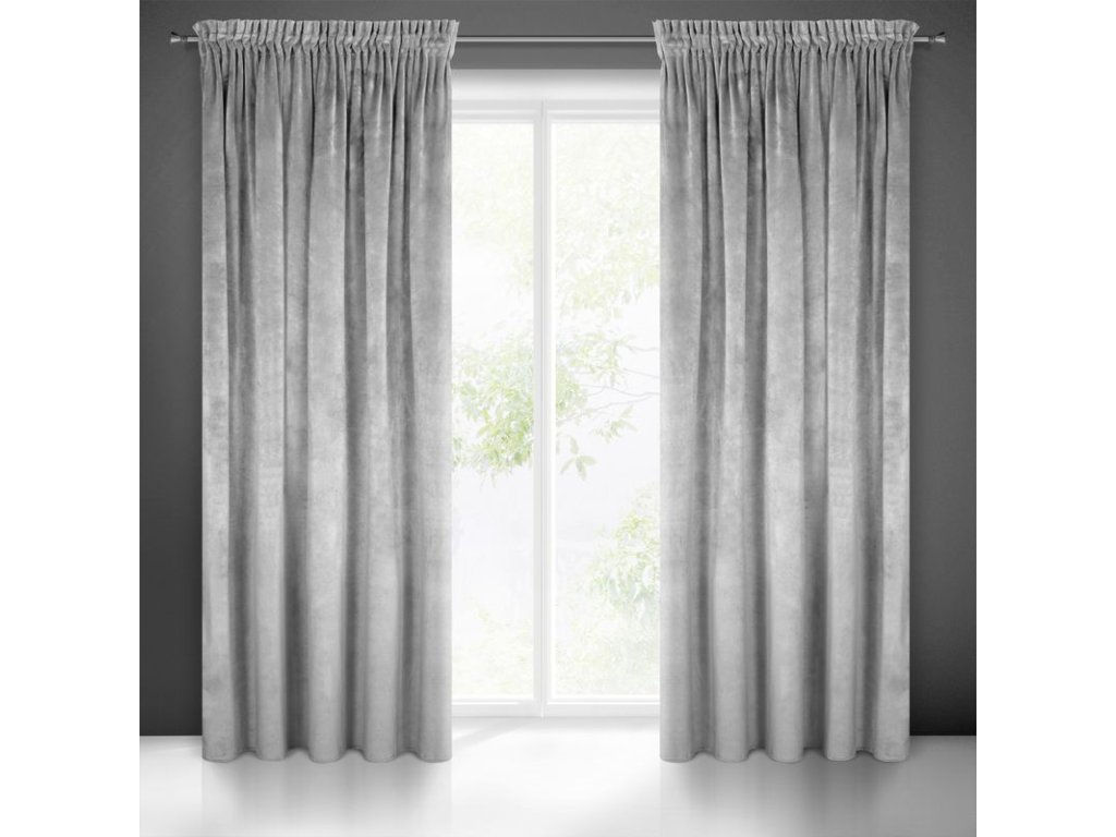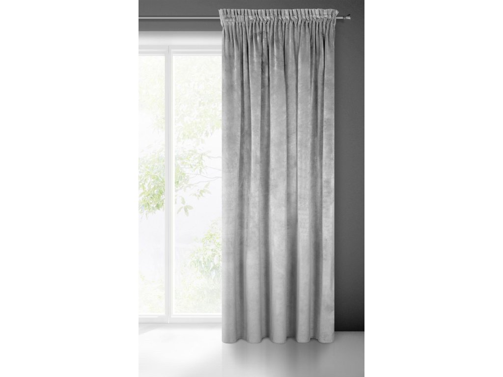 Závěs VILLA z exkluzivního sametu 140 x 270 cm v ocelově šedé barvě - řasící páska